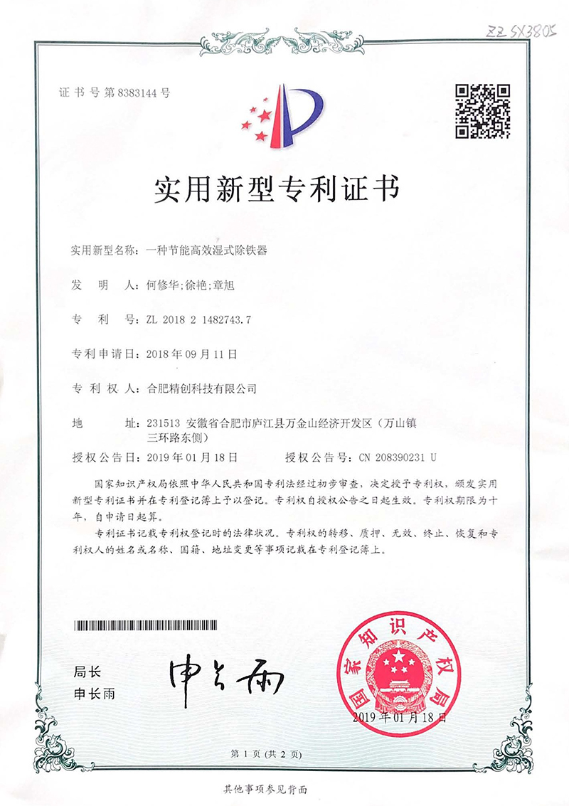 (2019實(shí)用新型)一種節(jié)能高效濕式除鐵器